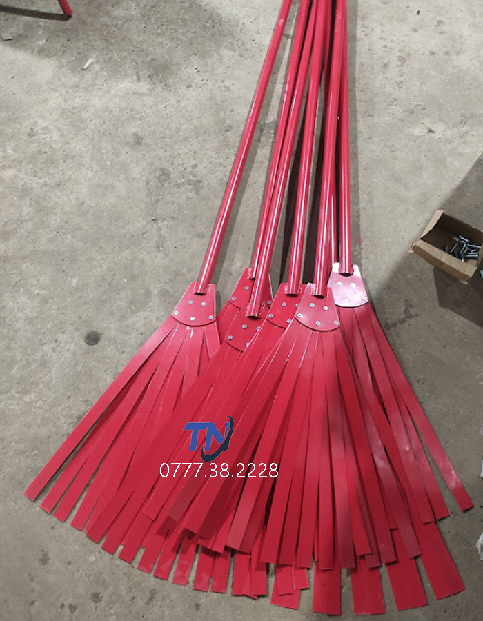 - Chất liệu: Được làm từ thép ống và thép cán mỏng định hình dáng chiếc chổi
