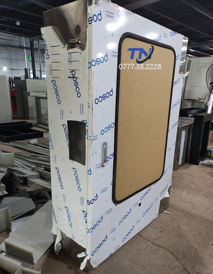 - Thiết kế: Tủ có 2 lớp cánh, cánh ngoài có mặt mica được chèn trong gioăng cao su để tạo thành ô quan sát, cánh trong khoét lỗ đèn báo
